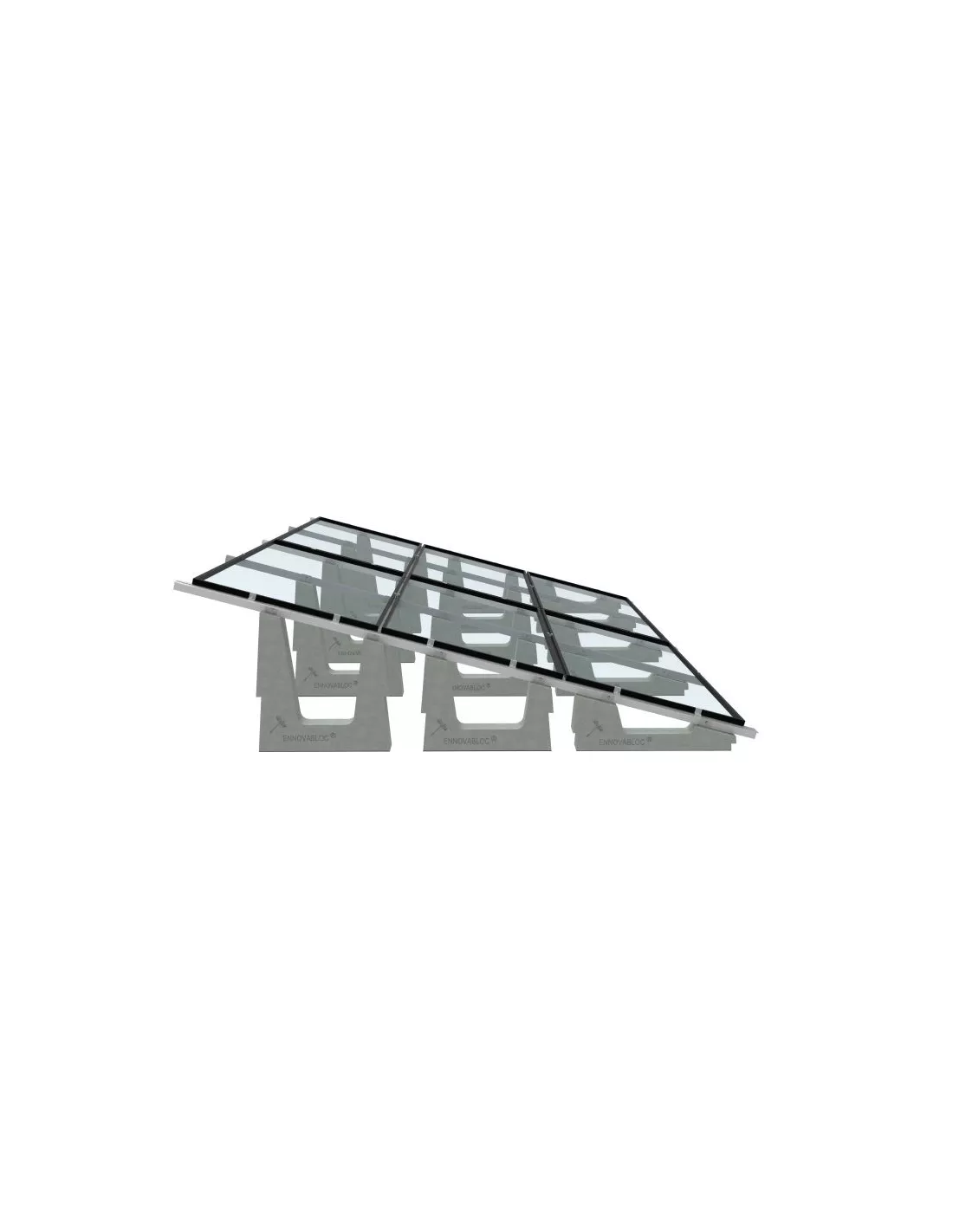 - ENNOVABLOC.- Son estructuras de hormigón para la instalación sobre suelo o cubiertas planas. Dispone de soluciones tanto para instalaciones en horizontal, vertical o en grupos formando filas o columnas como un solo elemento.