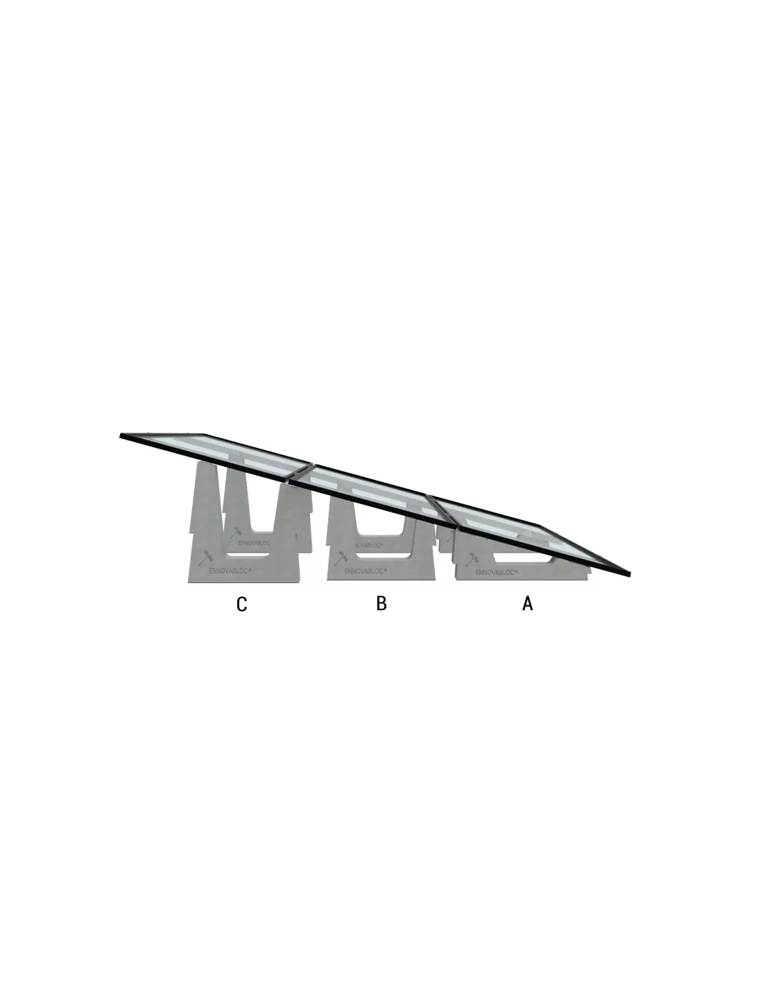 Los bloques de hormigón para estructuras solares Ennovabloc son una solución perfecta para aquellas estructuras que van apoyadas sobre suelo o cubiertas planas. Su fácil instalación y no tener que anclar a ninguna estructura existente hace que sea la opción más rentable para las instalaciones solares de este tipo. Aunque el producto resulta más caro que una estructura inclinada metálica, resulta más económico si consideramos el ahorro en mano de obra y no tener que añadir otros elementos como bordillos o bloque de hormigón prefabricado y luego anclar con varillas y fijar con taco químico.