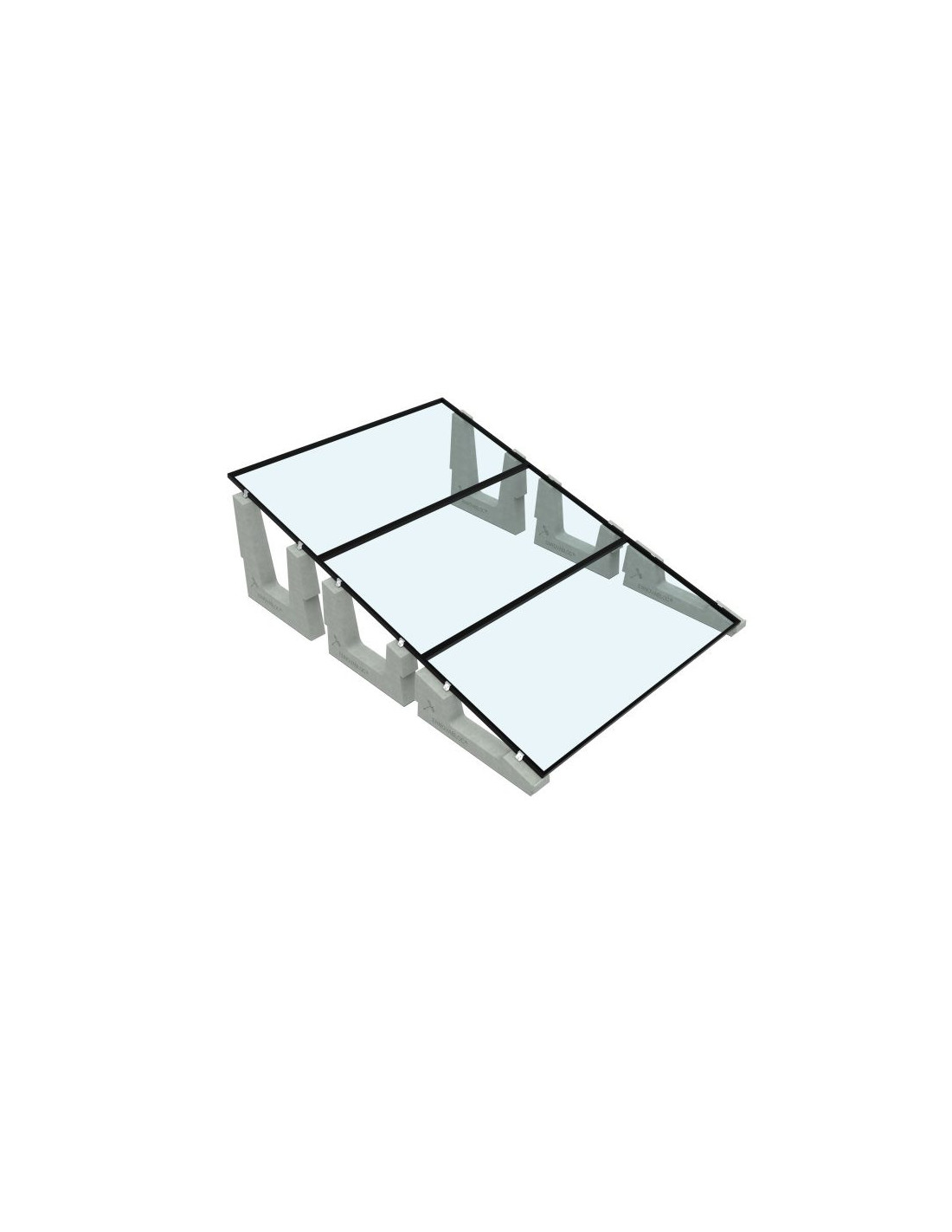La serie VELA combina la simplicidad del bloque de hormigón con posibilidad de realizar conjuntos de paneles en varias filas y columnas. Es una solución perfecta para suelo o cubiertas donde el espacio es reducido y no es necesaria mucha inclinación. Dispone de tres posibilidades de inclinación ya que tiene el modelos de 15º, de 10º y de 5º. En función del ángulo de inclinación se podrá realizar más filas de paneles en posición horizontal. De esta forma tenemos las siguientes posibilidades: