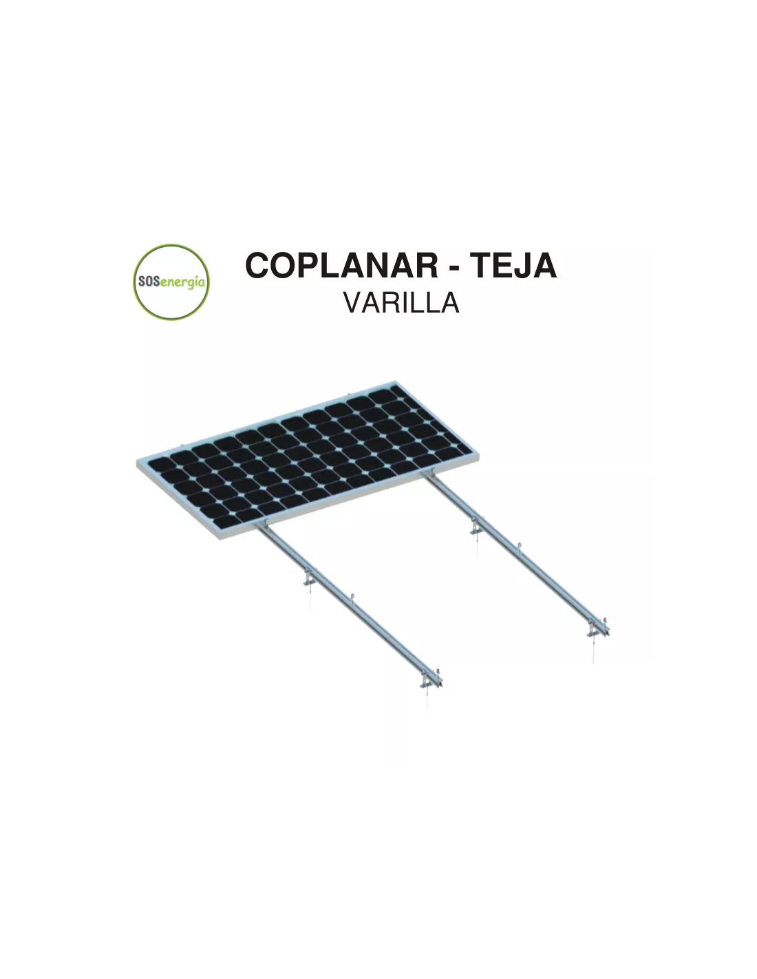 Estructura para paneles solares coplanar para integración en cubierta de teja con toda la perfilería, accesorios y tornillería necesaria para la fijación de módulos a cubierta de teja del edificio. La disposición de los módulos fotovoltaicos será en posición vertical respecto a la estructura.