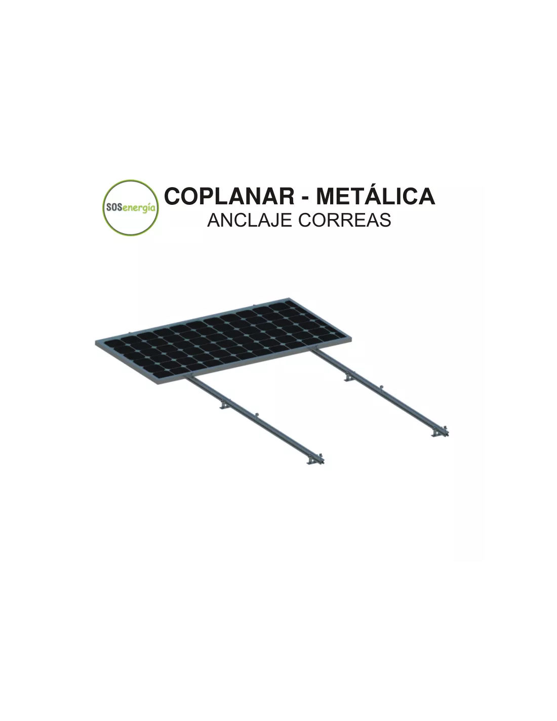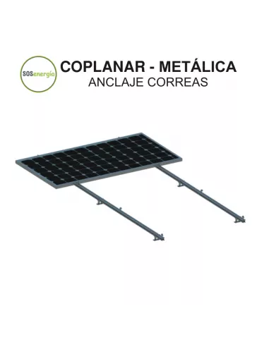Estructura para paneles solares coplanar para integración en cubierta metálica con toda la perfilería, accesorios y tornillería necesaria para la fijación de módulos a las correas de cubierta de chapa metálica del edificio mediante tornillo autotaladrante. La disposición de los módulos fotovoltaicos será en posición vertical respecto a la estructura.