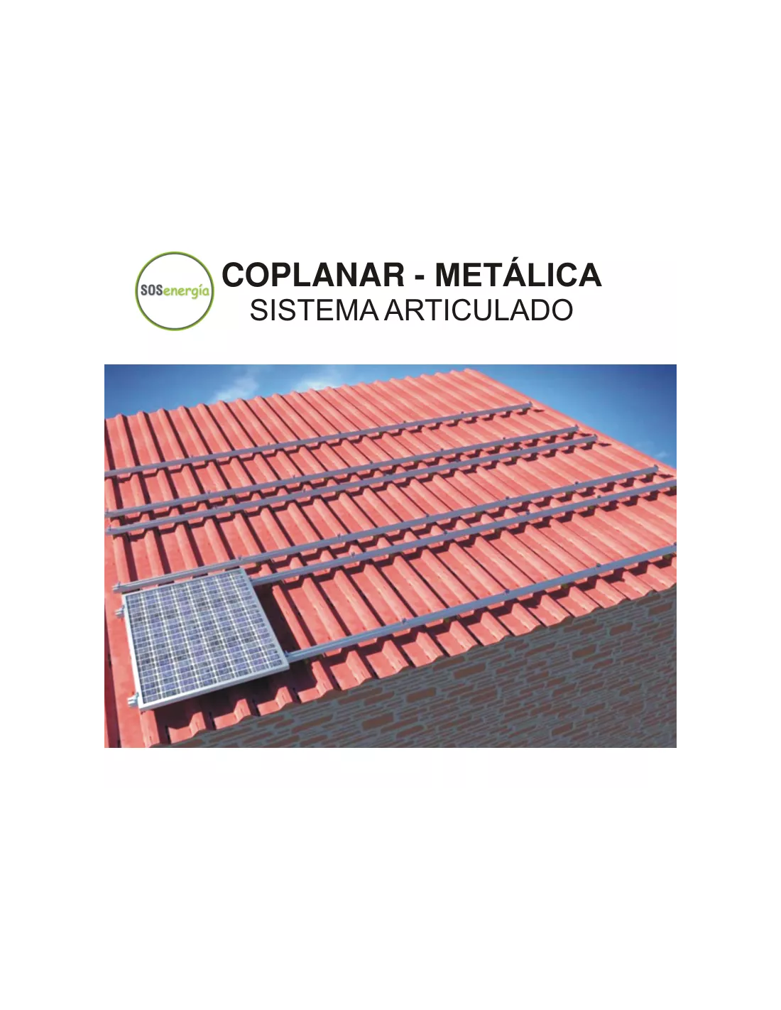 Estructura para paneles solares coplanar para integración en cubierta metálica con toda la perfilería, accesorios y tornillería necesaria para la fijación de módulos mediante sistema articulado a la greca de cubierta de chapa metálica del edificio mediante tornillo autotaladrante. La disposición de los módulos fotovoltaicos será en posición vertical respecto a la estructura.