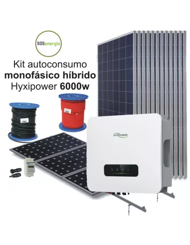 El kit híbrido de autoconsumo solar HYXiPOWER de 6000W, capaz de producir una media diaria de 29600 wh/día (*), incluye: