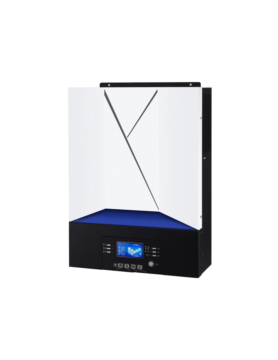 - Inversor Voltronic Axpert VM-III 48V/5000w.- Voltronic es una marca centrada en los inversores de aislada que cuenta con un amplio catálogo de producto y una excelente calidad. Este modelo de Voltronic permite ampliar la potencia de paneles para tener una producción óptima. Permite disponer de potencia suficiente para viviendas de uso fin de semana. Dispone de 3 años de garantía