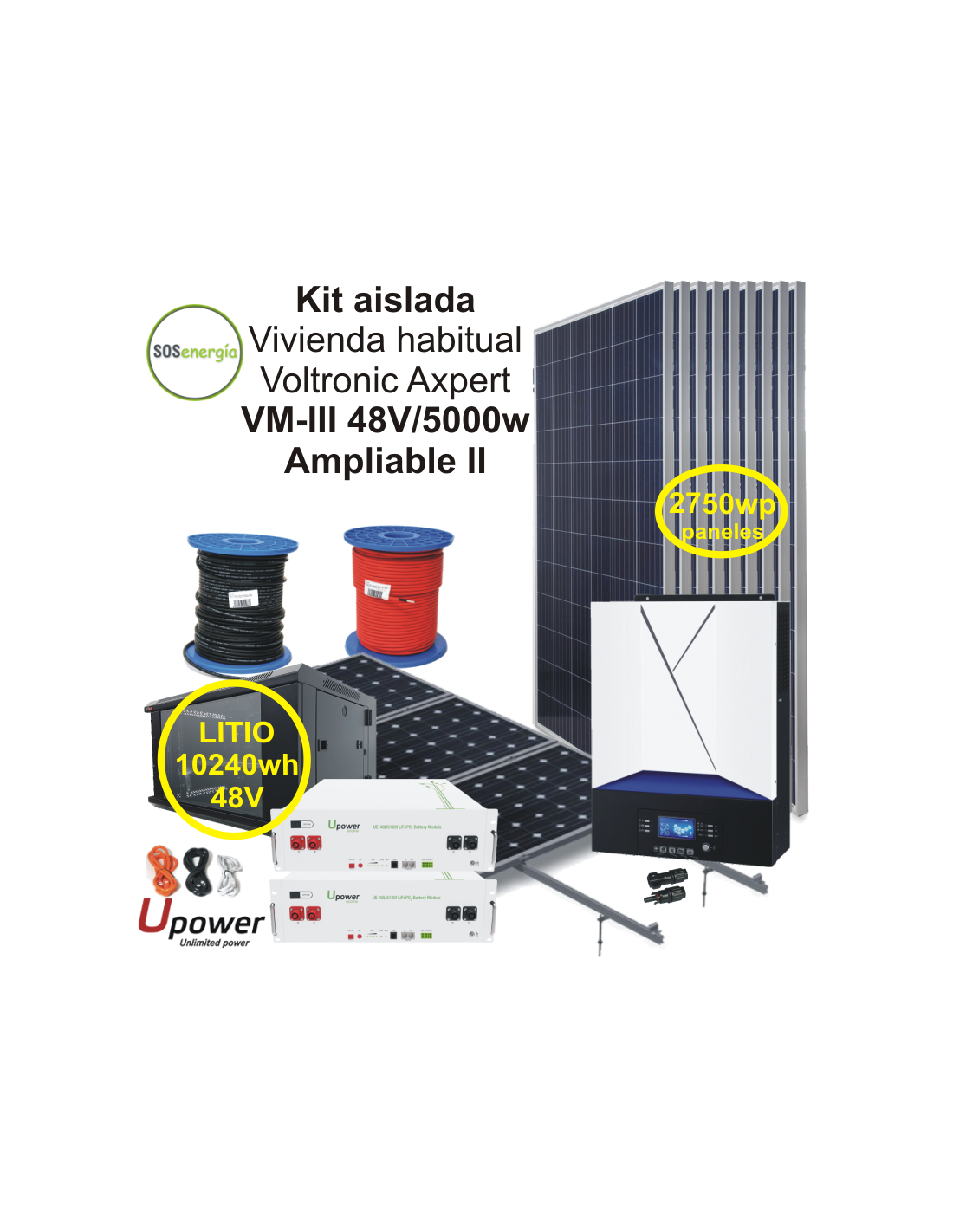 El kit de solar de aislada Voltronic Axpert de 5000W es capaz de producir una media diaria de 12000 wh/día (*). El kit Incluye: